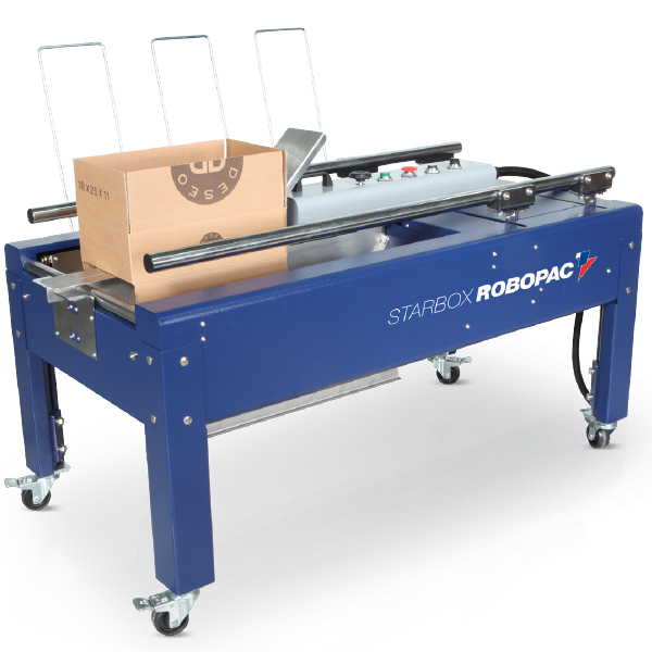 Las Starbox arman cajas de cartón de distintos tamaños doblando automáticamente las cuatro solapas inferiores. Las cajas se mantienen en posición estable de modo tal que permiten el llenado por parte del operador; posteriormente y, mediante el empujador neumático, las cajas son enviadas a la precintadora para el cierre final.